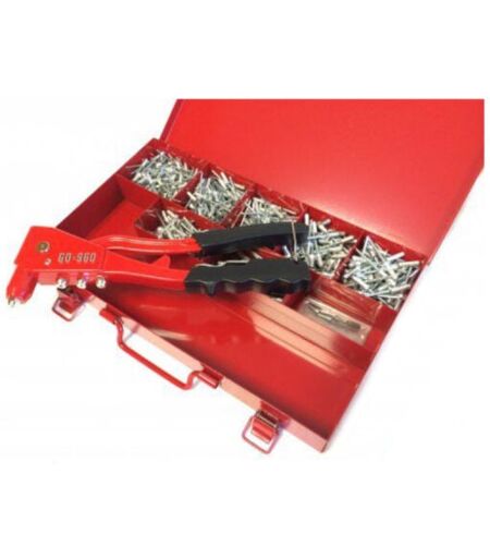 Présentation : Avec le coffret 430 rivets et pince à rivet DEGOMETAL , vous pourrez effectuer de nombreux assemblages. Cet ensemble contient des rivets de 4 à 4,8 mm de diamètre en alu/acier à tête ronde standard Gomulti TRS, ainsi qu'une pince GO 960. Caractéristiques : Réf. 100009606M Conditionnement : Coffret 430 rivets et pince à rivet DEGOMETAL : 1 x Pince 120 x Rivets Al/Ac TRS 4,0x9 80 x Rivets Al/Ac TRS 4,0x12 60 x Rivets Al/Ac TRS 4,0x17 60 x Rivets Al/Ac TRS 4,8x10 50 x Rivets Al/Ac TRS 4,8x15 40 x Rivets Al/Ac TRS 4,8x17 20 x Rivets Al/Ac TRS 4,8x24 ...