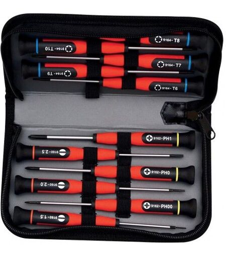 Jeu de 12 tournevis de précision - empreintes Fente, Philipps et Torx MOB