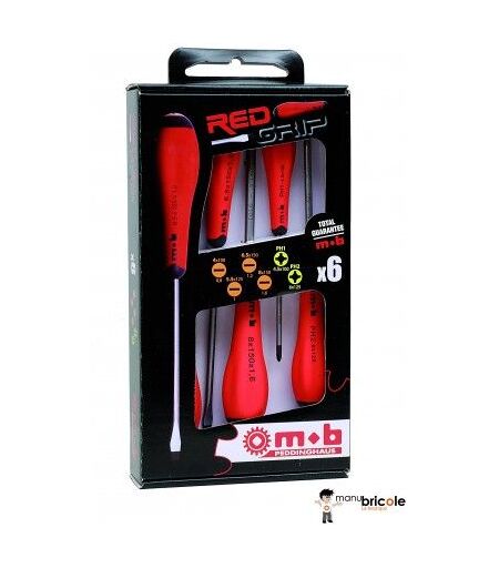 Jeu de 6 tournevis Redgrip 4 fente + 2 PZ 6 MOB OUTILLAGE