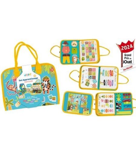 TON NOUVEAU JOUET : Ce jeu est facile à prendre en main par les enfants. Il les aidera à développer leurs patiences, leurs concentrations, et permettra également de développer leurs coordinations et leurs motricités fines grâce aux différentes activités -CONTENU : 1 pochette, 2 planches pour les gestes du quotidien (boucles, lacets), 4 planches pour l'apprentissage de l'alphabet, des chiffres, des couleurs et des formes, 1 planches tableau blanc avec 4 feutres effaçables à sec, 1 planche puzzle jungle - Appartenant au groupe MGM, La marque J.A.D.E du groupe MGM propose une large sélection de jeux et jouets pour le 1er âge. Jouer, Apprendre, Découvrir et s'Eveiller. Cette gamme de produit éducatif accompagne les enfants tout au long de leurs croissances. Les marques détenues par MGM portent haut les valeurs du groupe : respect, qualité, honnêteté et dynamisme. Cette pochette d'activités est spécialement conçue pour offrir des heures d'amusement aux enfants en toute sécurité. Utilisable aussi bien à l'intérieur qu'à l'extérieur, pochette d'activités est parfait pour s'amuser seul ou entre copains. Pour un anniversaire, une fête, les vacances ou toutes autre occasion, offrez une expérience amusante dès le plus jeune âge. Âge requis : dès 3 ans ...