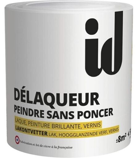 Description générale Le Délaqueur ID 500ml est un produit idéal pour préparer les surfaces recouvertes de peinture brillante, de laque ou de vernis avant de les repeindre. Il dégraisse et dépolit la surface, garantissant ainsi une excellente adhérence pour votre nouvelle peinture, tout en évitant le ponçage fastidieux. Spécifications techniques Conditionnement : 500ml Rendement : environ 8m² Compatibilité et accessoires Supports compatibles : Boiserie, Lambris, Meuble, Objet Peintures recommandées : Acryliques et glycéro Installation Aucune installation requise. Préparez simplement votre surface avant d'appliquer la peinture. Utilisation Pour utiliser le Délaqueur, suivez ces étapes : Imbibez un chiffon de produit et frottez la surface à traiter. Attendez au moins 30 minutes (maximum 48 heures) avant d'appliquer votre nouvelle peinture. ...