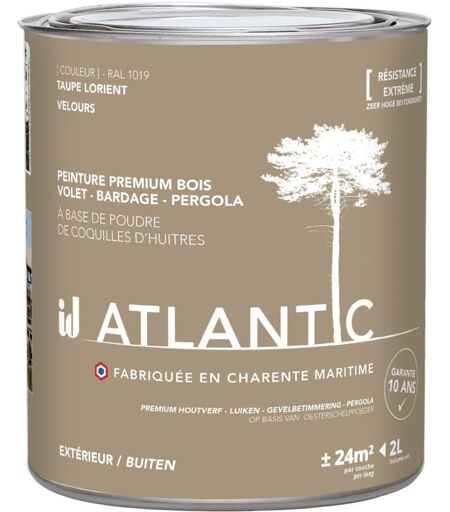 ID PARIS Peinture bois extérieurs - RAL 1019 Taupe Lorient - 2L - ATLANTIC