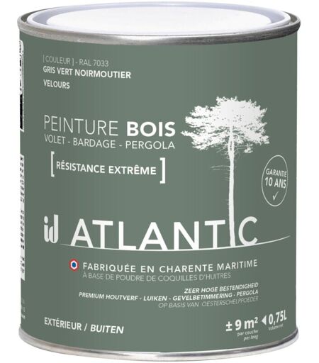 ID PARIS Peinture bois extérieurs - RAL 7033 Gris vert Noirmoutier - 750ML - ATLANTIC
