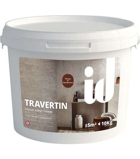 Description générale Le Travertin est un enduit aspect pierre, fabriqué en France, qui rénove et décore tout en masquant les imperfections des murs. Il se teinte avec des terres naturelles et s'applique facilement à la spatule ou à une taloche en inox. De plus, il est décollable à l'éponge humide ou à l'aide d'une décolleuse à papier peint. Spécifications techniques Conditionnement : 10 kg Bénéfices : Déco, rénovation, masque les imperfections Supports : Mur Rendement : ± 5 m² Compatibilité et accessoires Primaire pour préparation Spatule ou taloche en inox pour application Installation Appliquez une couche de primaire avant d'utiliser l'enduit. Pour la première couche, utilisez la spatule ou la taloche en inox pour appliquer l'enduit et lissez pour obtenir une surface uniforme. Laissez sécher pendant 8 heures. Pour la seconde couche, appliquez une couche fine et laissez prendre pendant 10 à 15 minutes, puis raclez la surface pour créer des aspérités et donner l'effet travertin. ...