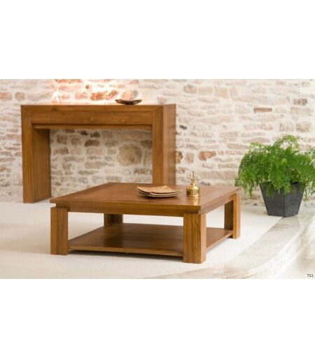 Macabane - api - Table basse carrée marron sous plateau 90x90cm bois Teck