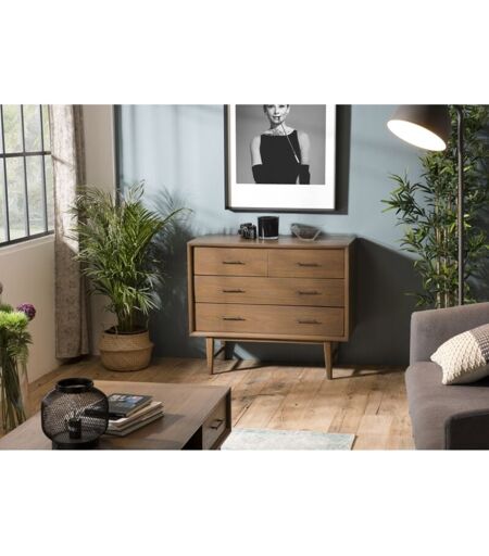 Commode 4 tiroirs bois Mindi. Dimensions : 100 x 45 x 84,5 cm. Article en Mindi et Contreplaqué de mindi. Vous retrouverez l'ambiance à la fois chaleureuse et nordique avec notre gamme Lara. Epurée, lumineuse, Lara vous apporte une touche de douceur avec sa teinte noyer. Succombez au charme épuré de cette commode et de ces 4 tiroirs en bois mindi. Elle apportera de la lumière et de la douceur à votre pièce. Cette commode sera idéal dans plusieurs pièces de votre intérieur. Meuble monté, pieds à visser ...