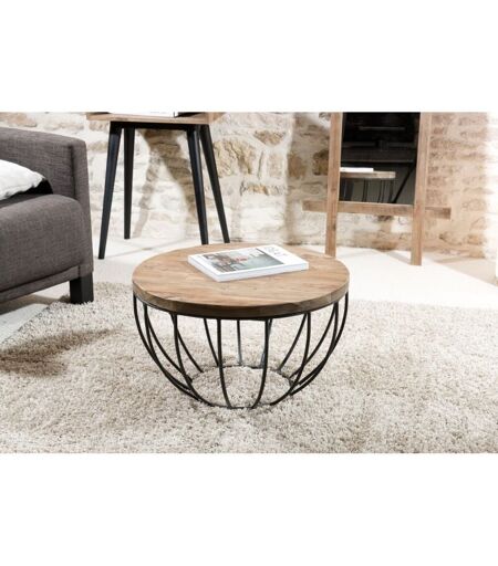 Macabane - sixtine - Table basse coque ronde 60x60cm plateau teck recyclé piétement métal noir