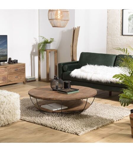 Macabane - sixtine - Table basse coque ronde 120x120cm double plateau Teck recyclé métal noir
