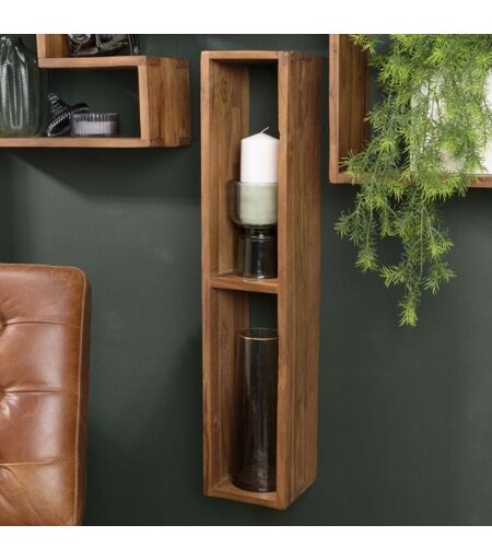 Macabane - sixtine - Étagère murale marron rectangulaire 2 niches bois teck recyclé