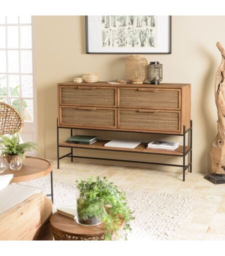 Macabane - sixtine - Buffet 4 tiroirs 1 étagère en bois de teck recyclé