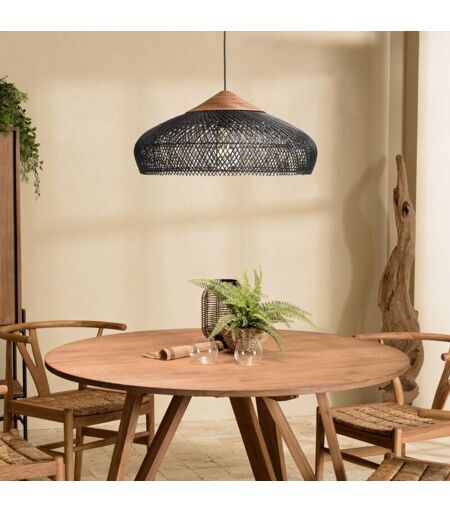 Suspension 65x65cm en rotin couleur noire et teck recyclé. Article en Rotin/Teck recyclé/Acier. Dimension 65 x 65 x 30 cm. Craquez pour le charme de cette suspension en rotin noir, aux dimensions généreuses de 65x65 cm. Elle ajoutera une touche de chaleur à votre espace, parfait pour une décoration bohème ou naturelle. Meuble monté ...
