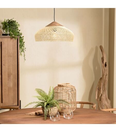 Macabane - sixtine - Suspension 40x40cm en rotin couleur naturelle et teck recyclé