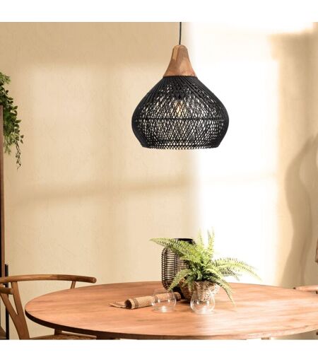 MACABANE SIXTINE - Suspension 'cloche' 40x40cm en bois teck et rotin noire