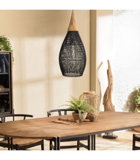 Macabane - sixtine - Suspension 'goutte' 35x35cm en rotin couleur noire et teck