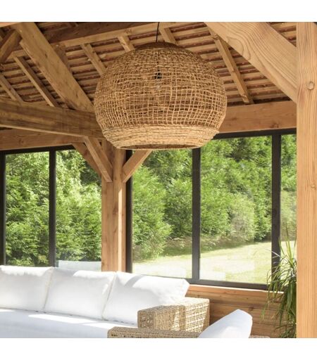 Suspension 'boule' 83x83cm en abaca couleur naturelle et teck. Article en Abaca (chanvre de Manille)/Acier. Dimension 83 x 83 x 66 cm. Découvrez la suspension en abaca naturel et teck, avec ses dimensions généreuses de 83 x 83 cm. Son design généreux et élégant transformera l'éclairage de votre intérieur en créant une atmosphère chaleureuse. Meuble monté ...