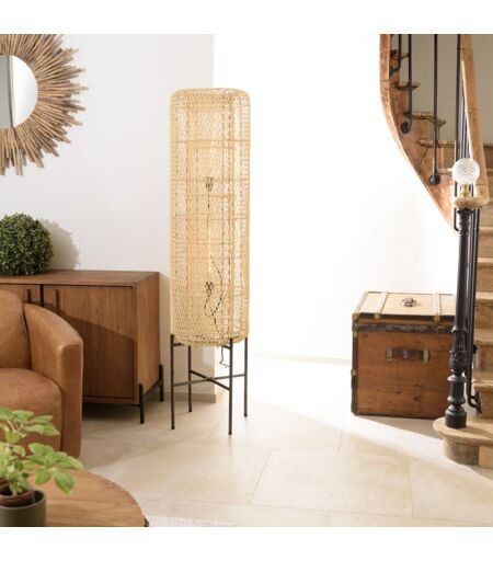 Macabane - sixtine - Lampadaire 39x39cm rotin naturel pieds acier noir