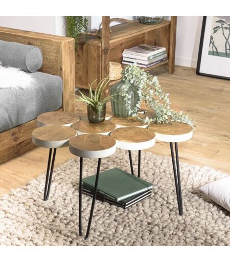 MACABANE SAM - Table basse plateau rondelles bois teck pieds épingles