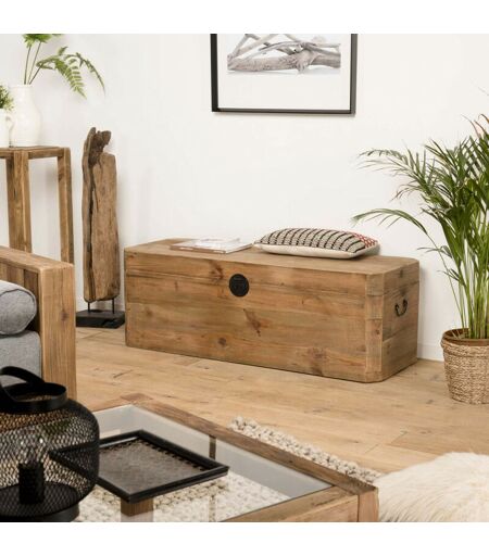 MACABANE Sandy - Coffre rangement marron bois Pin recyclé poignées métal noir