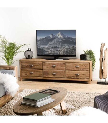 MACABANE SANDY - Meuble TV marron 6 tiroirs bois Pin recyclé