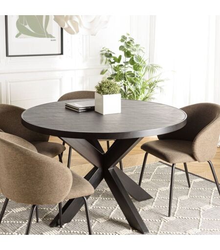 Table à manger 120x120cm plateau noir effet pierre. Dimension 120 x 120 x 76 cm. Article en MDF plaqué polyuréthane/Acier. Veuillez noter que le revêtement est délicat et nécessite un nettoyage en douceur pour préserver sa qualité et son apparence. Nous vous recommandons d'utiliser des produits non abrasifs et un chiffon doux pour éviter toute altération. Succombez à l'élégance naturelle de cette table à manger 120x120 cm au plateau noir effet pierre. Alliant style et fonctionnalité grâce à sa forme ronde. Idéal pour passer des moments de convivialité dans votre espace repas. Meuble démonté ...