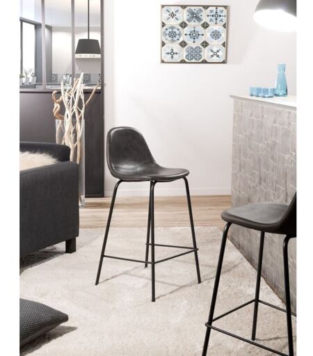 Macabane - tom - Lot de 2 tabourets de bar John anthracite hauteur d'assise 65cm