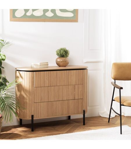 Macabane - charlie - Commode marron 3 tiroirs style rétro Pin pieds métal noir