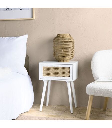 Macabane - sandro - Chevet blanc 1 tiroir cannage naturel