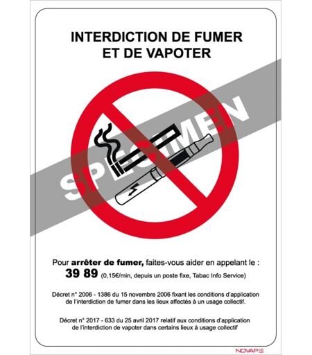 NOVAP Panneau 210x297 mm rigide interdiction de fumer et de vapoter