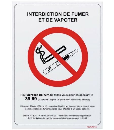Panneau interdiction de fumer et de vapoter Novap - 148 x 210 mm