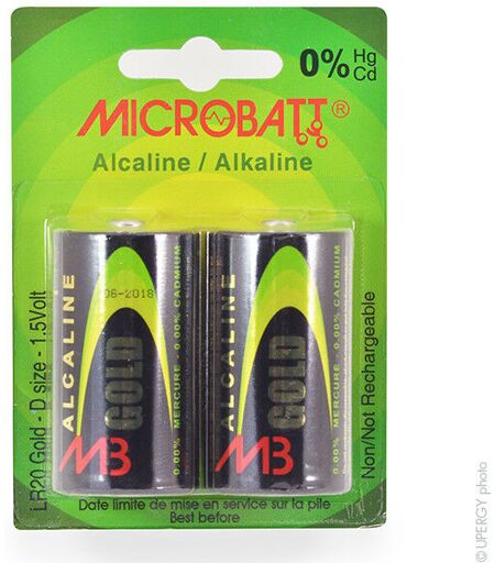 Microbatt - Pile alcaline blister x2 MB LR20 - D 1.5V 19.76Ah