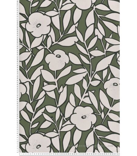 Ce modèle est un papier peint vinyle sur intissé (230 grammes/m2) de style fleurs charme graphique nature vintage fleurs scandinave. Il est lessivable, strippable et bénéficie d'une bonne résistance à la lumière. Ses couleurs dominantes sont les beiges les verts les argentés. Caractéristiques techniques : Dimensions : 53 centimètres x 10,05 mètres Raccord : 64 centimètres (Raccord droit) Intissé : pose facile, encollage du mur Type de matière : Papier peint vinyle sur intissé Grammage : 230 grammes/m2 Entretien : Lessivable Dépose : Dépose Résistance à la lumière : Bonne résistance Couleurs : Les beiges Les verts Les argentés Styles : Fleurs ...