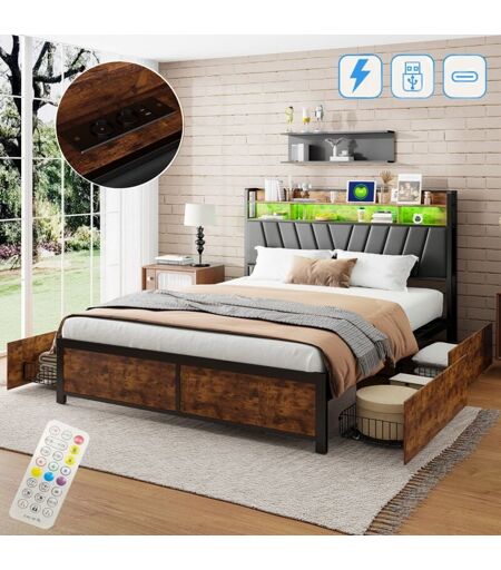 Style Vintage élégant : L'alliance du bois au style vintage et du métal confère à ce lit un charme unique, qui s'harmonise parfaitement avec toutes les chambres. Associé aux coussins moelleux de la tête de lit, il crée une ambiance artistique et confortable, idéale pour vous détendre après une longue journée. Tête de lit avec prises et ports USB: Profitez d'une tête de lit fonctionnelle équipée de ports USB (USB-A/USB-C) et de deux prises européennes standards, vous offrant la possibilité de recharger facilement vos appareils électroniques. Gardez votre téléphone ou tablette toujours à portée de main, pour plus de commodité. Éclairage LED avec télécommande : Ce lit est doté d'un système LED intégré qui peut être contrôlé à distance grâce à une télécommande, vous permettant de changer les couleurs et ajuster l'éclairage selon vos envies, pour créer une ambiance personnalisée et relaxante. Conception astucieuse de rangement : Quatre tiroirs spacieux avec roulettes vous offrent un accès ...