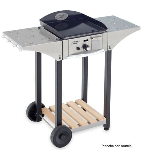 Le chariot bois et inox CHPS 400 est adapté à votre plancha Roller Grill de largeur 400 mm. Cette desserte très fonctionnelle vous offre en un minimum de place, différents espaces de rangement : 2 tablettes inox rabattables avec butée pour poser les assiettes à servir Une glissière d' accroche-ustensiles intégrée Une réserve en partie inférieure destinée à la bouteille de gaz pour toute plancha gaz. Cette réserve peut être utilisée comme une zone de stockage supplémentaire pour la plancha électrique. Personnalisez votre chariot plancha avec les accessoires Roller Grill ! La cloche (CV53175) permet la cuisson à l'étouffée de légumes Le couvercle à charnières (53196SE) est aussi destiné à la cuisson à l'étouffée et fait de la plancha un réel barbecue . La grille de cuisson (GR53175) facilite la cuisson des tomates et des pommes de terre en robe de champ Le kit de 3 parois inox (HB53175) habille la desserte ou cache la bouteille de gaz L'étagère inox (53190SE) sert de porte-condiments et ...