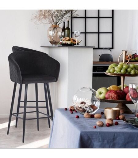 Cotecosy - Chaise de bar Bobby Velours Noir