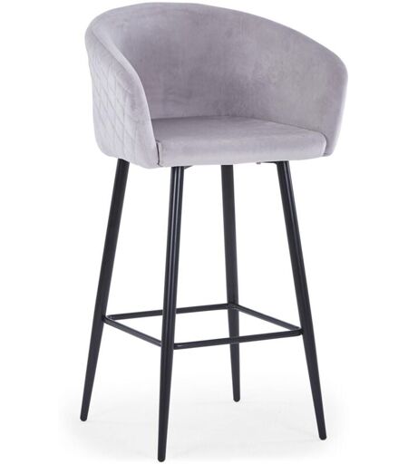 Chaise de bar moderne en velours Coloris ARGENT La chaise BOBBY est une magnifique chaise de bar avec pieds en métal noir. Grâce à son revêtement matelassé vous bénéficiez d'un excellent confort d'assise et déjeuner ou dîner à votre table de bar n'est plus un problème ! Avec son revêtement en velours doux, cette chaise de bar associe des matériaux tendance pour un résultat chic et contemporain. Les coutures en losange du dossier arrondi ajoutent du cachet à cette chaise de bar contemporaine. Dimensions : L62 x P53 x H106 cm Matière : Velours / Velours ...