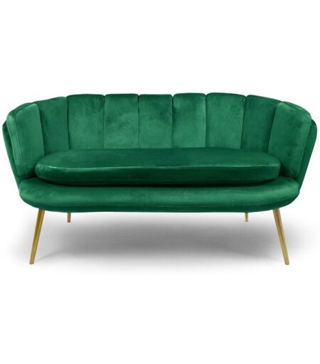 Cotecosy - Canapé 2 places arrondi Brenda Velours Vert pieds Or