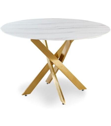 COTECOSY Table ronde Corix Verre effet Marbre Blanc et pieds Or