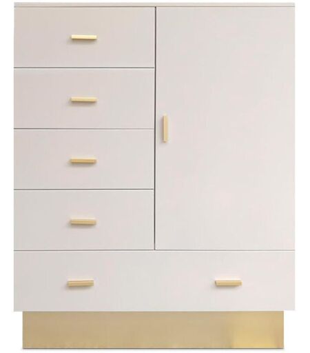 MENZZO Buffet haut moderne 5 tiroirs et 1 porte Nestor Taupe clair et Or