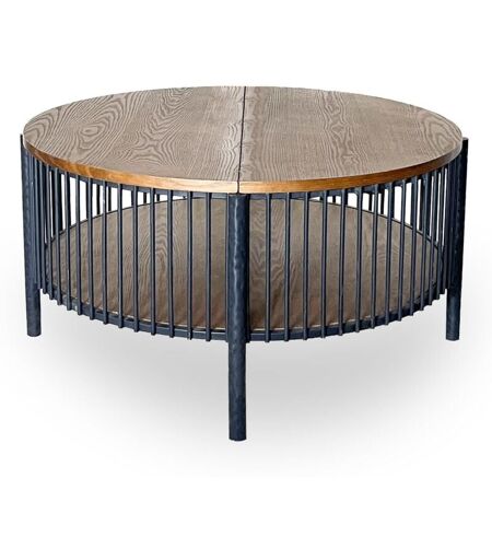 Menzzo - Table basse ronde avec rangement L84cm Curcuma Bois et Métal mareté Noir