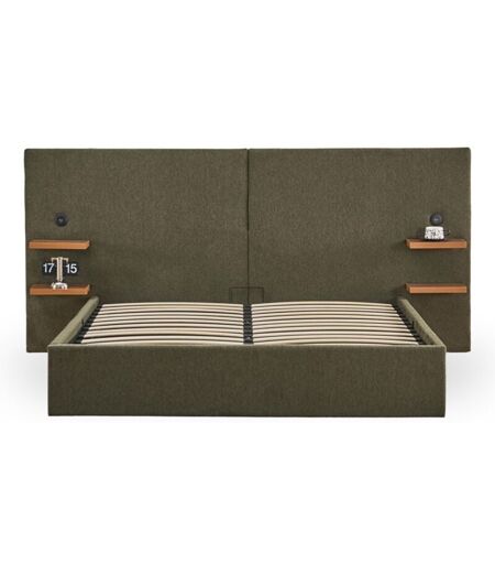 MENZZO Lit-coffre complet avec tablettes et ports USB intégrés Lukas 140x190cm Tissu Vert