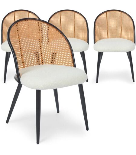 MENZZO Lot de 4 chaises design Showan avec cannage Rotin et Tissu bouclette Crème