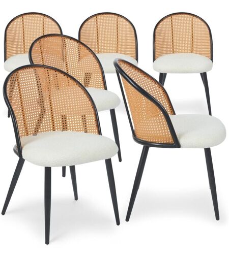 MENZZO Lot de 6 chaises design Showan avec cannage Rotin et Tissu bouclette Crème