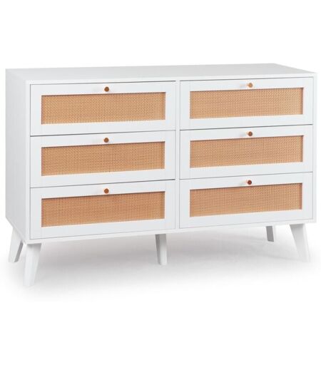 MENZZO Commode 6 tiroirs avec cannage Dalgora L120cm Blanc