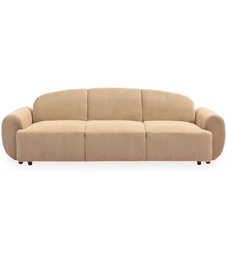 COTECOSY Canapé 3 places convertible dossier et accoudoirs arrondis Oliver Velours côtelé Beige