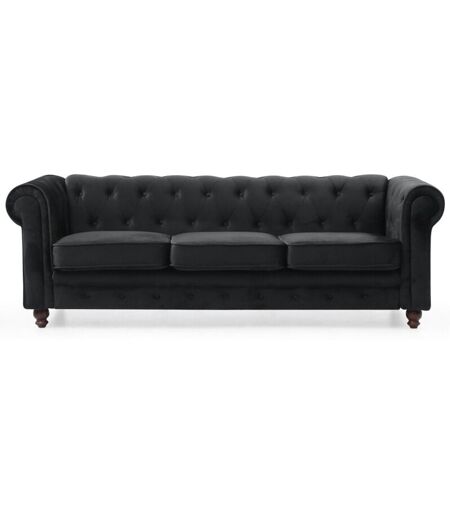 COTECOSY Grand canapé 3 places Chesterfield Velours Noir