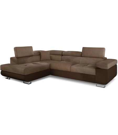 Cotecosy - Canapé d'angle convertible simili cuir et tissu marka - Coffre et appuis-tête réglables-Marron/Marron clair-angle gauche