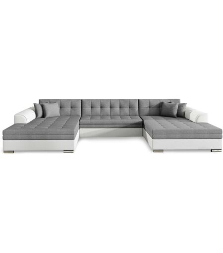 COTECOSY Canapé d'angle panoramique convertible tissu gris et simili blanc Vira 355 cm
