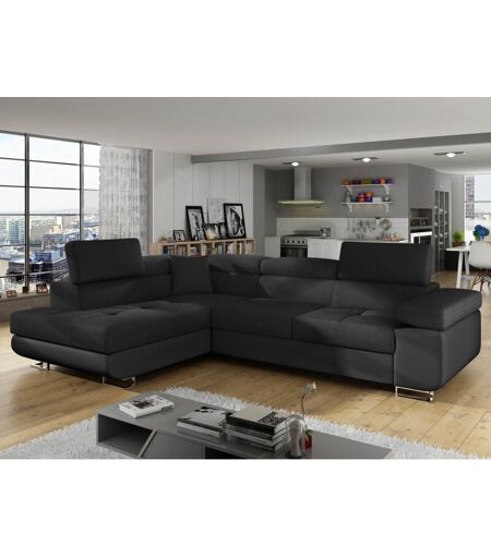 Cotecosy - Canapé d'angle gauche convertible simili noir Marka 275cm