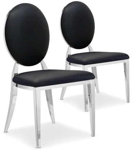 LOT DE 2 CHAISES de salle à manger médaillon Coloris NOIR La chaise SOFIA est une chaise de qualité supérieure, avec structure et pieds en métal. Assise et dossier rembourrés très confortables et pieds en métal brillant effet miroir ultra chic. Ces chaises trouveront leurs places dans des intérieurs classiques ou modernes. Dimensions : L45 x P47 x H90 cm Matière : Simili & P.U. / Simili (P.U.) ...