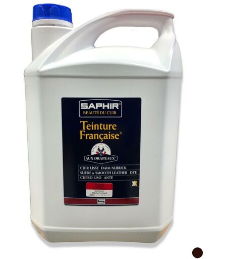 TEINTURE FRANCAISE Cuir Liquide Saphir, 5 litres, couleur marron fonce . Produit de la gamme : teintures cuir. Ean : 3324010819054 Teinture pour tous cuirs lisses, daim, nubuck et cuir veloutés. Formule pénétrante a base d'alcool, utilisable en couche de ... ...